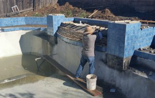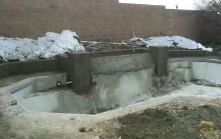 We realized that the noise issue solution required more than simple fountain or sheer descent so we designed and installed a combination fountain and chatter falls (cascade over decorative ledgerstone). We removed the old decking, tested and repaired plumbing, added new hardscape features, installed tile and plaster to match theme, installed heater and automated equipment, fountainhead with LED lighting, and decking.