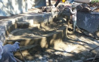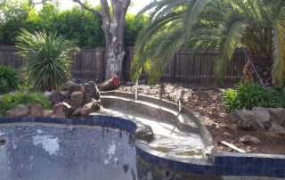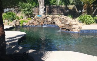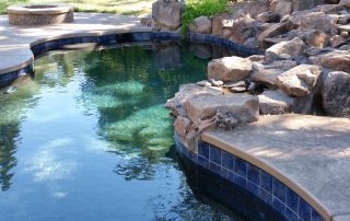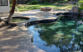 We removed the older decking and pressure tested all plumbing to address any leaks. Then we set about creating a focal point natural-look cascade into the pool. We also added entertainment features such as a firepit, changed the pool shape to accommodate deck space, re-plastered and poured all new decking. We also installed a new skimmer, autofill and upgraded the equipment to a more efficient and quiet unit with remote control convenience.